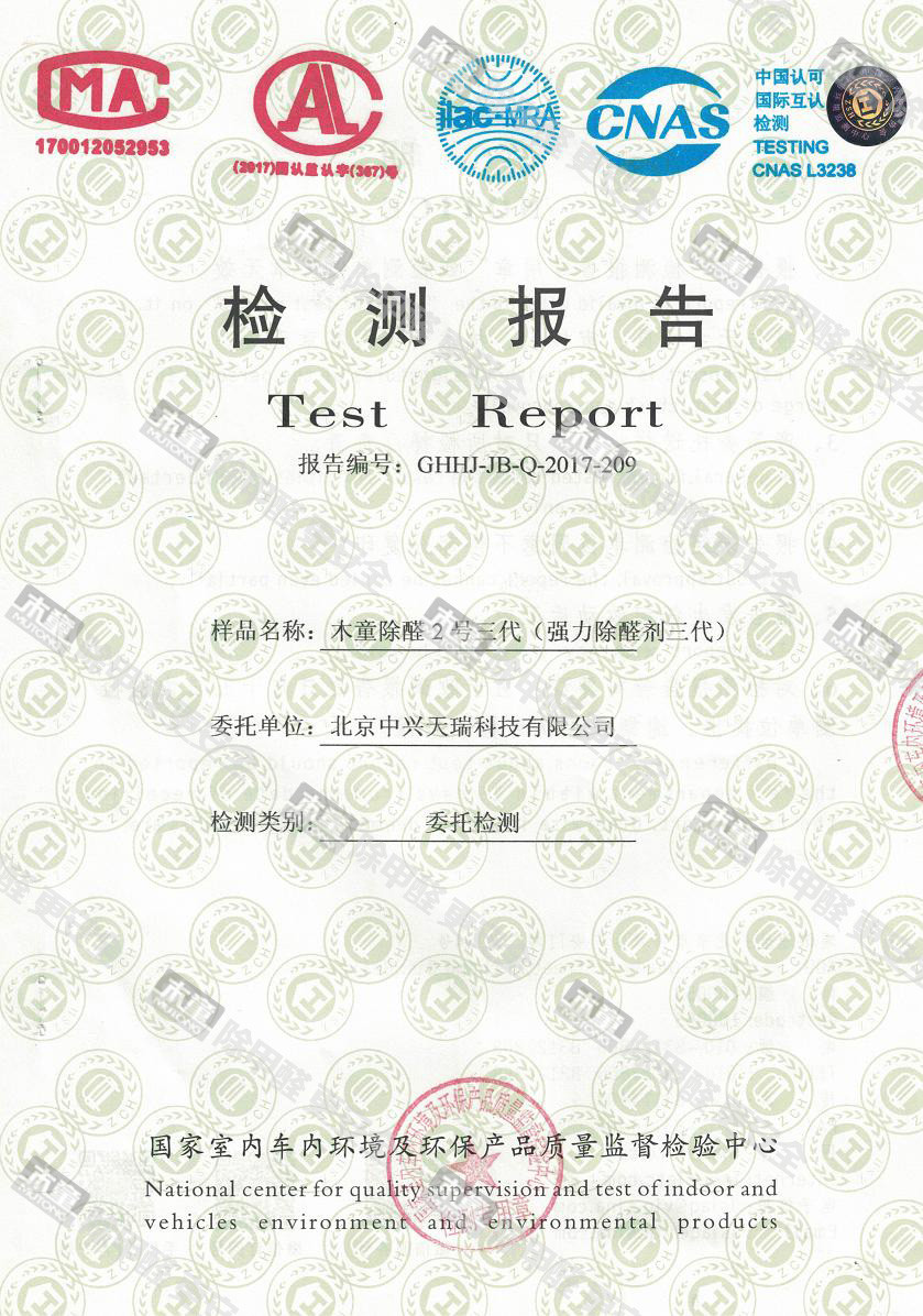 木童家具甲醛清除劑皮膚安全性檢測報告